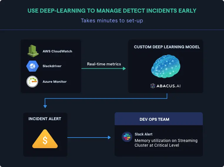 Deploy state-of-the-art deep learning model to detect anomalous behavior and prevent IT incidents from happening. Increase uptime, reduce alert fatigue and increase the efficiency of your operations team
