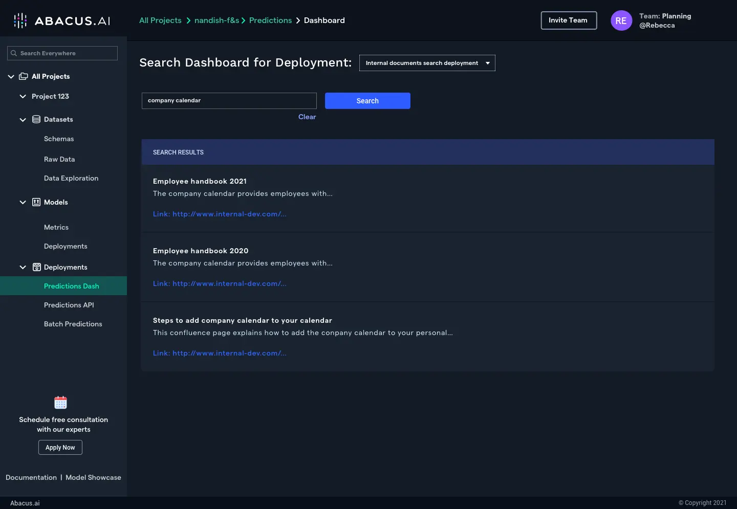 With Abacus.AI you can set up state-of-the-art deep learning models for text search within hours. Based on your specific domain and use case, Abacus.AI can fine-tune pretrained models, apply transfer learning or simply train new language models from scratch. No cumbersome data preparation or engineering effort to deploy the models in production is required.
